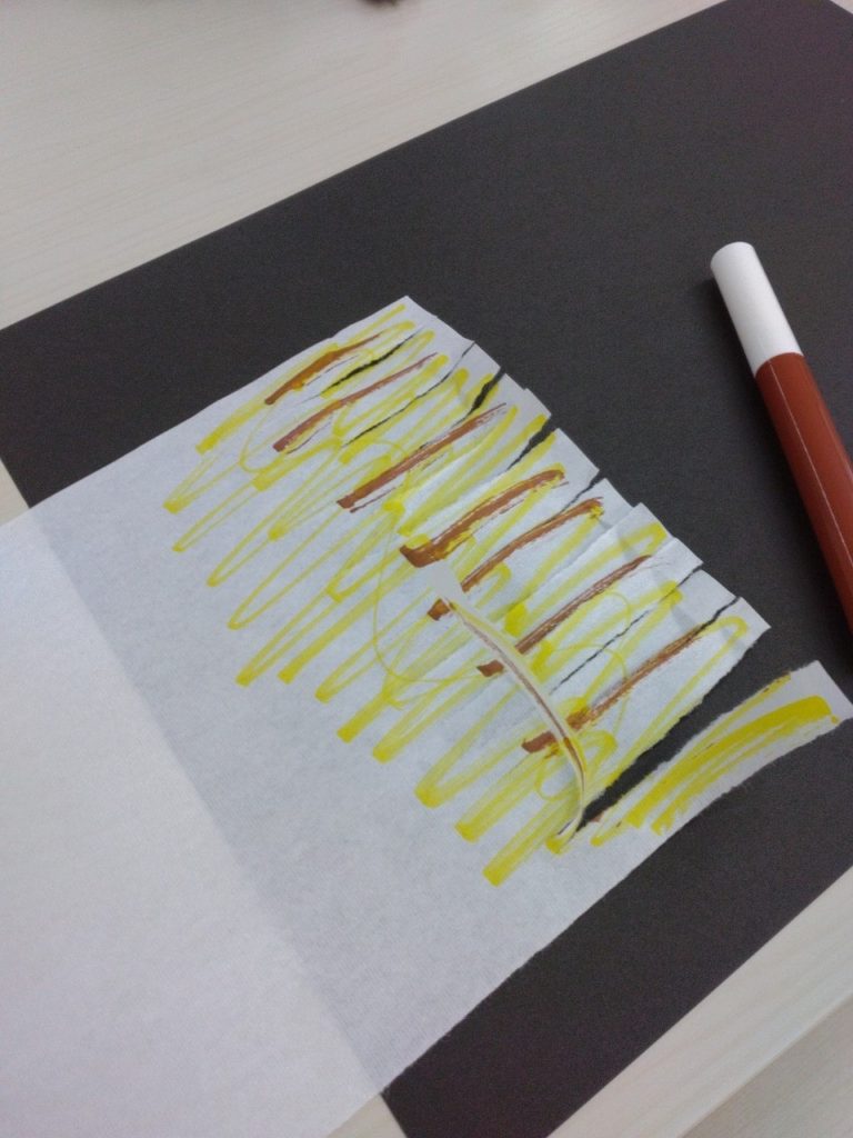 どの手順で進めていくか、用紙はどの材質が良いか、色はどのくらい塗るかなどを模索中👩🔬