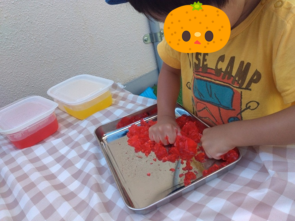 今日は、テラスで寒天遊びをしました🤲