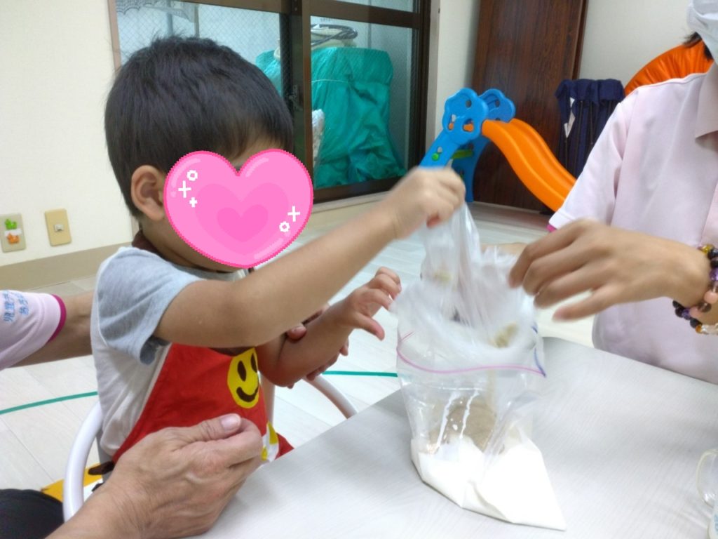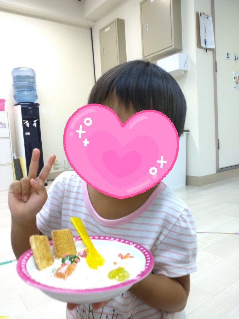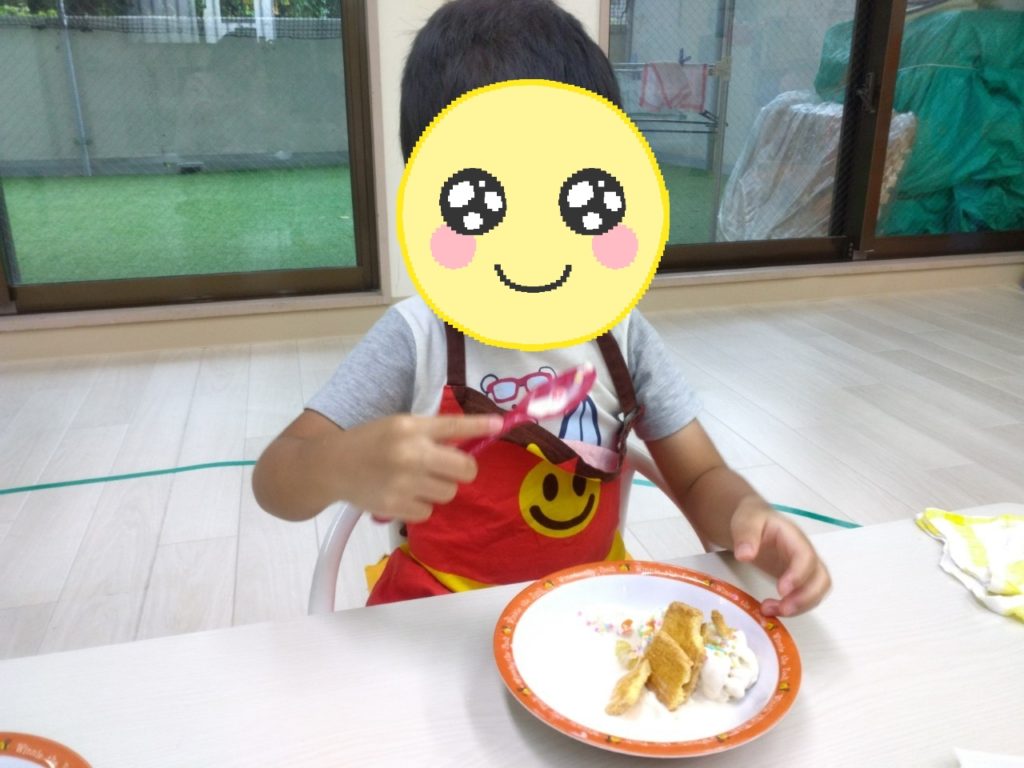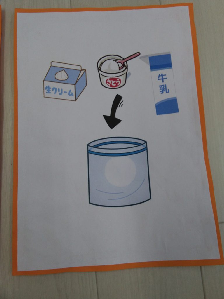 今日の課題は、おやつクッキングで🍨パフェを作ります。スタッフがイラストを使い作り方の説明を行います♫