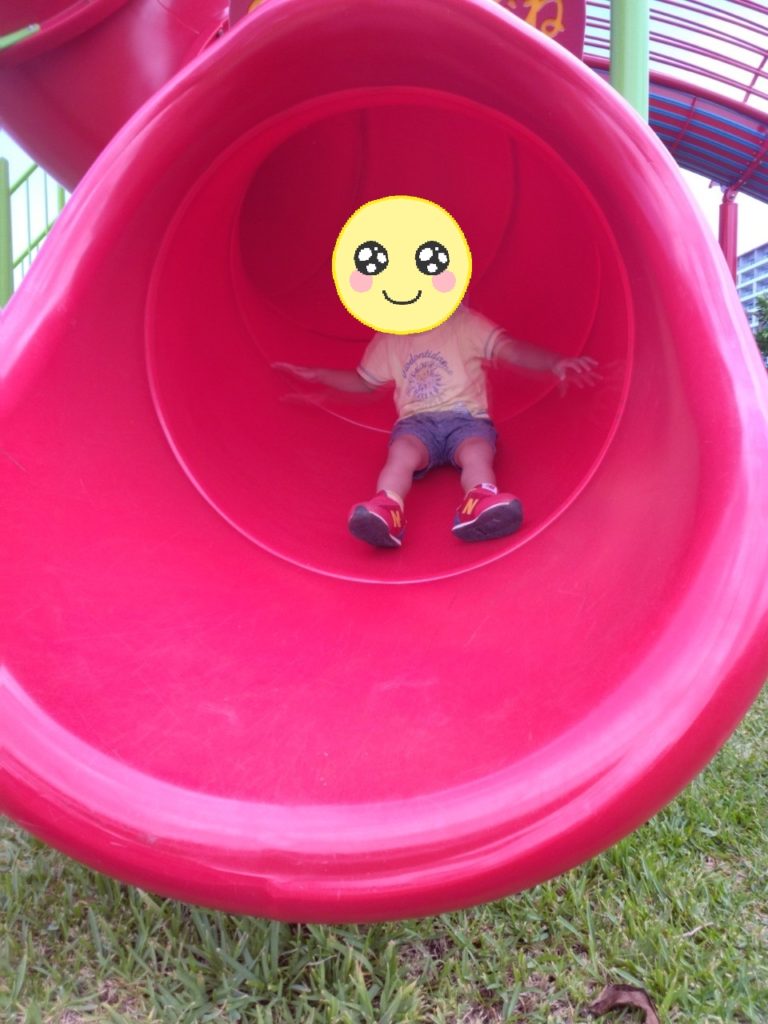 トンネル型の滑り台は、「一人ですべれるよ~!」嬉しそうにお話ししていました♥