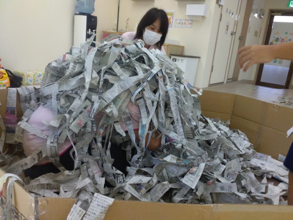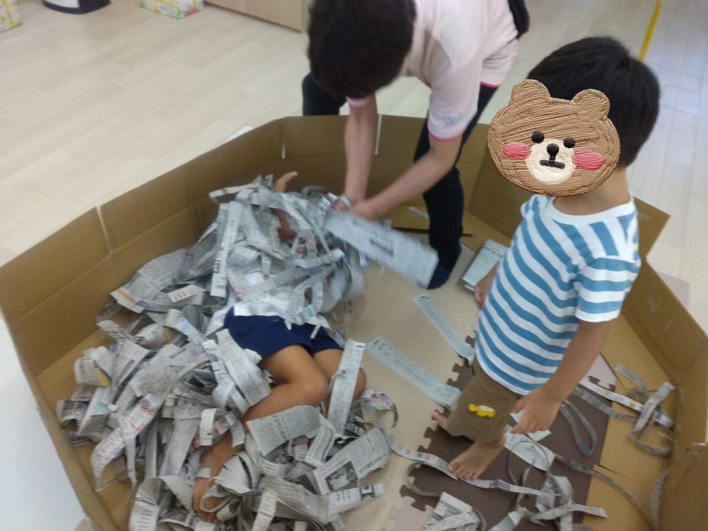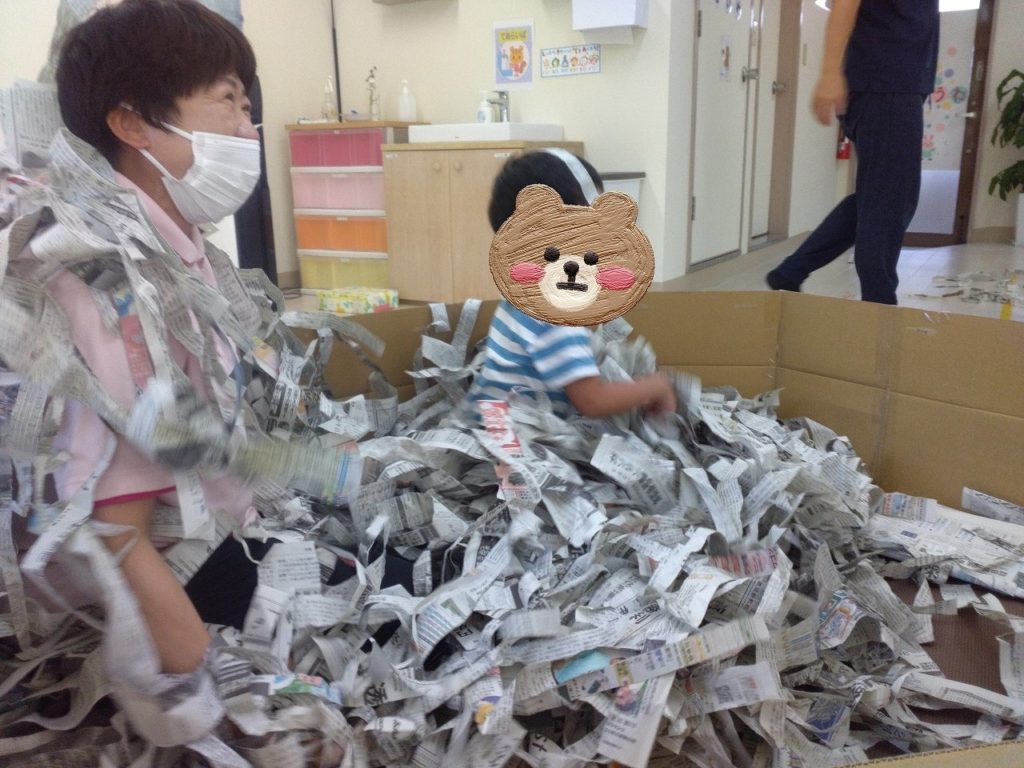 全身を使って存分に新聞の感触を楽しんでいる様子が見れてスタッフも嬉しい気持ちになりました😊