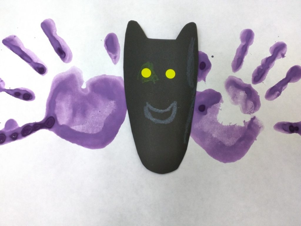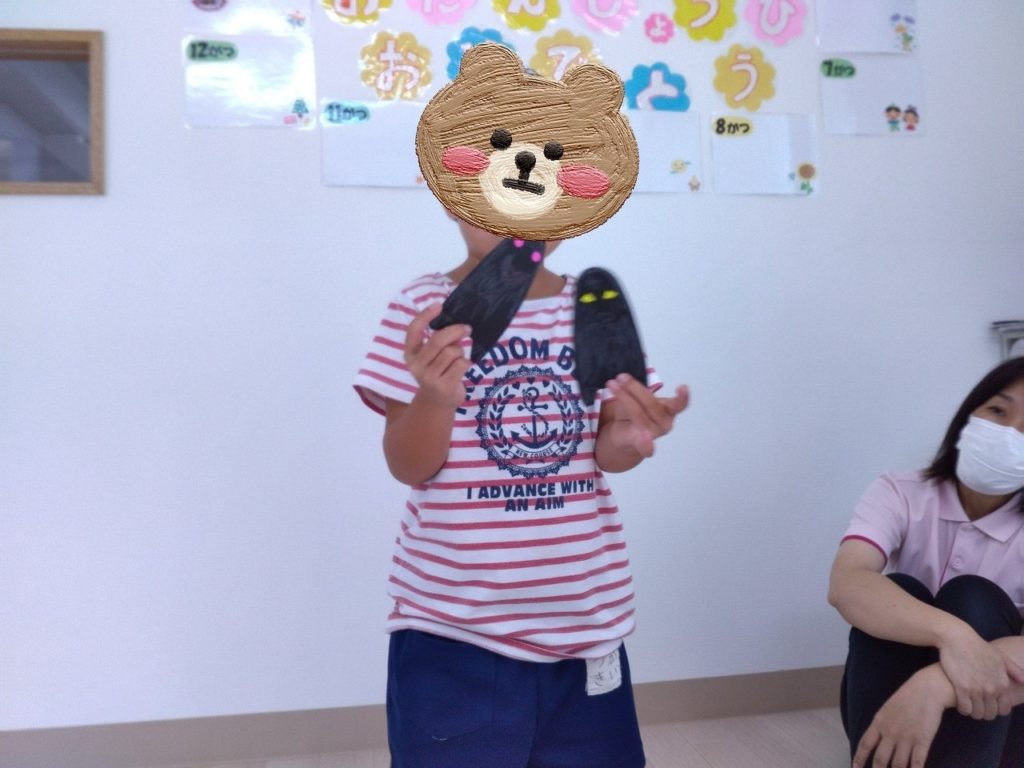 手が羽根になって、黒い台紙がお顔で~♪「コウモリ」に大変身🤩