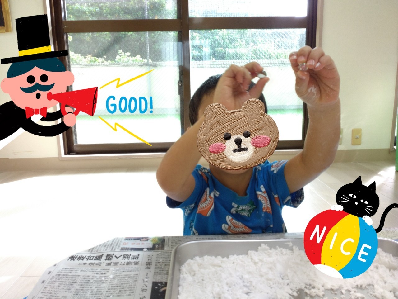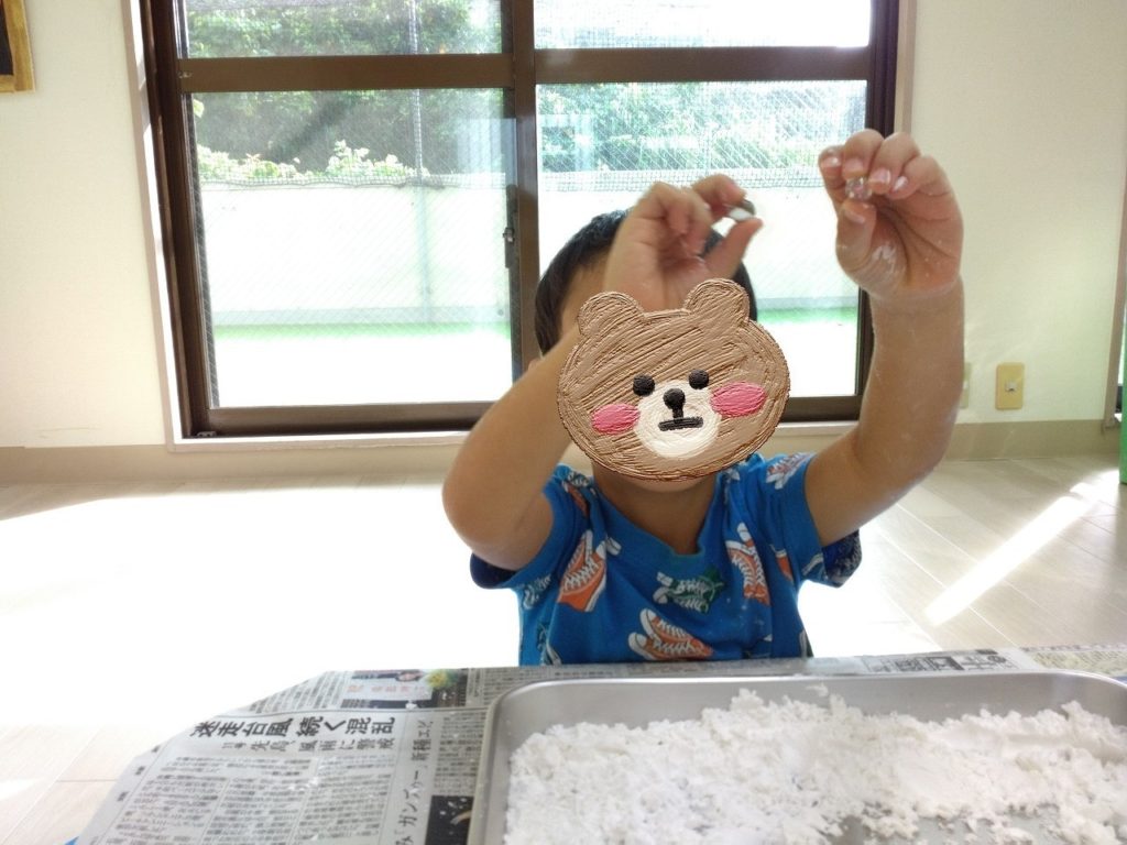 かたくり粉の感触にも慣れてきたようなので、粉の量を増やしてみます😁