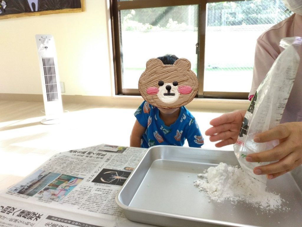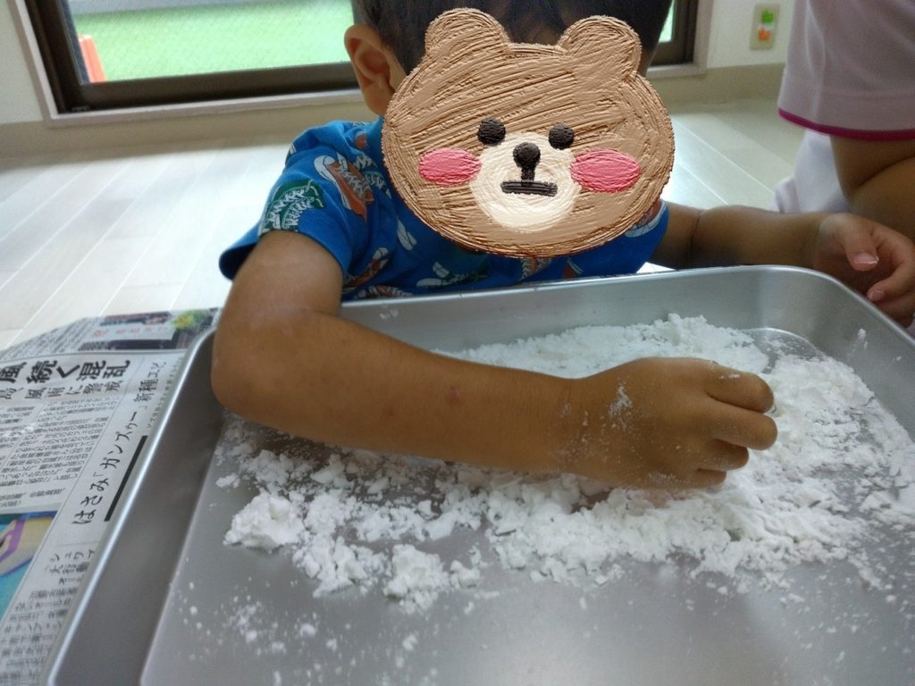 次は、かたくり粉に水を混ぜて感触の変化を体験してみよう♪😎
