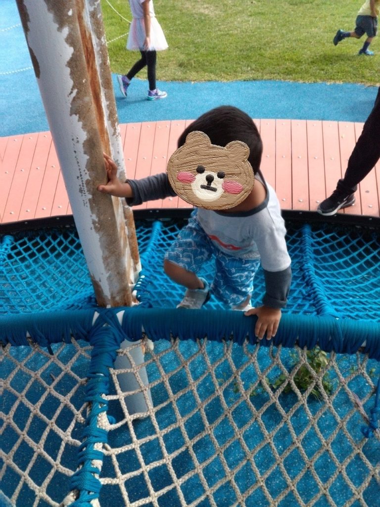 こちらは、網の遊具に挑戦してました!以前来た時は、腰が引けてなかなか前に進むことが出来なかったのですが今回はどうなるんでしょうか!😎