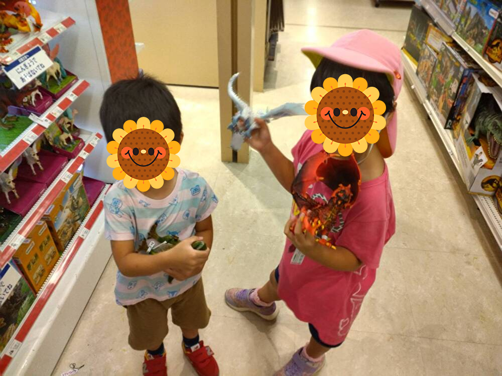 道中でなんと恐竜に遭遇!かっこいい恐竜にお友だちはテンションが上がりました😊