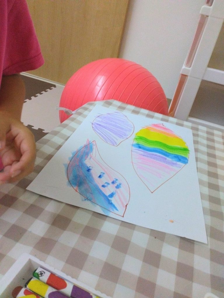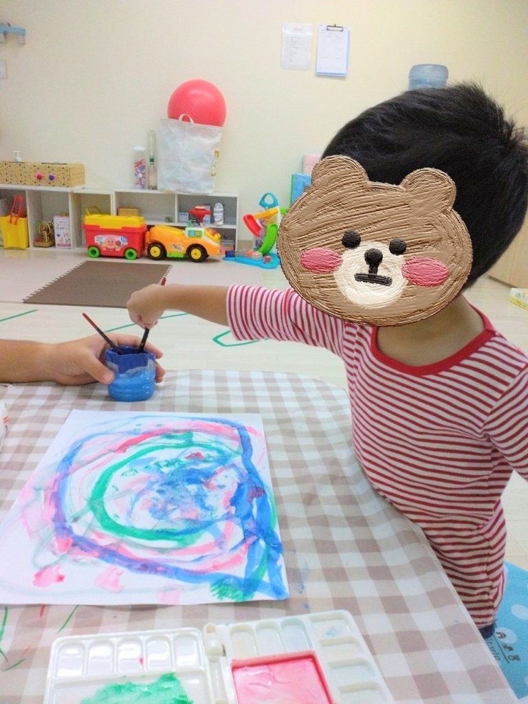 筆を使って、絵具を好きなように塗っていきます(*^-^*)