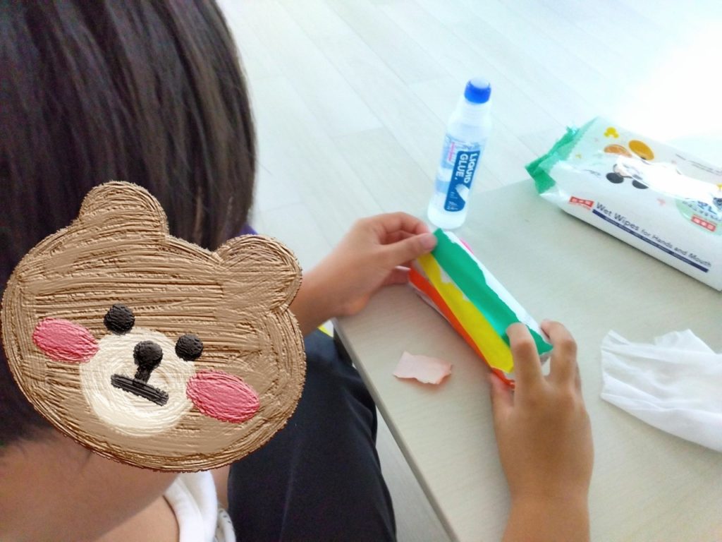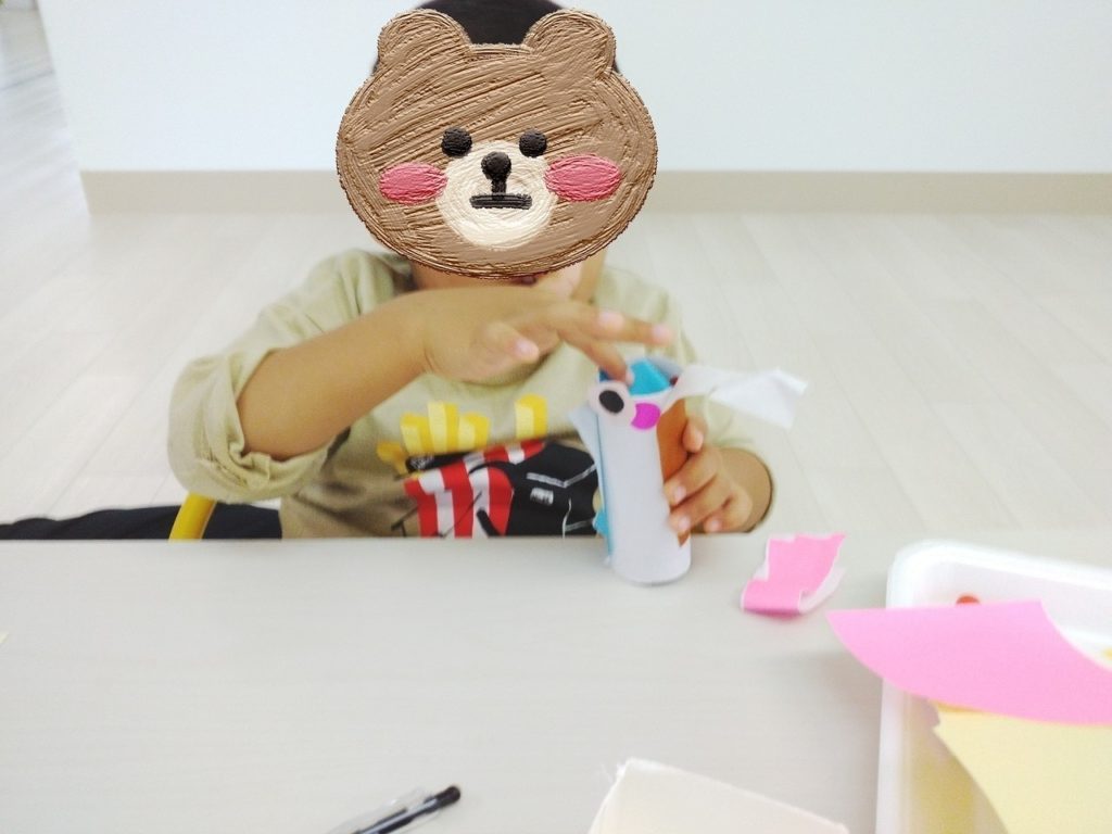 次は、トイレットペーパーの芯に折り紙を貼っていきます🙌