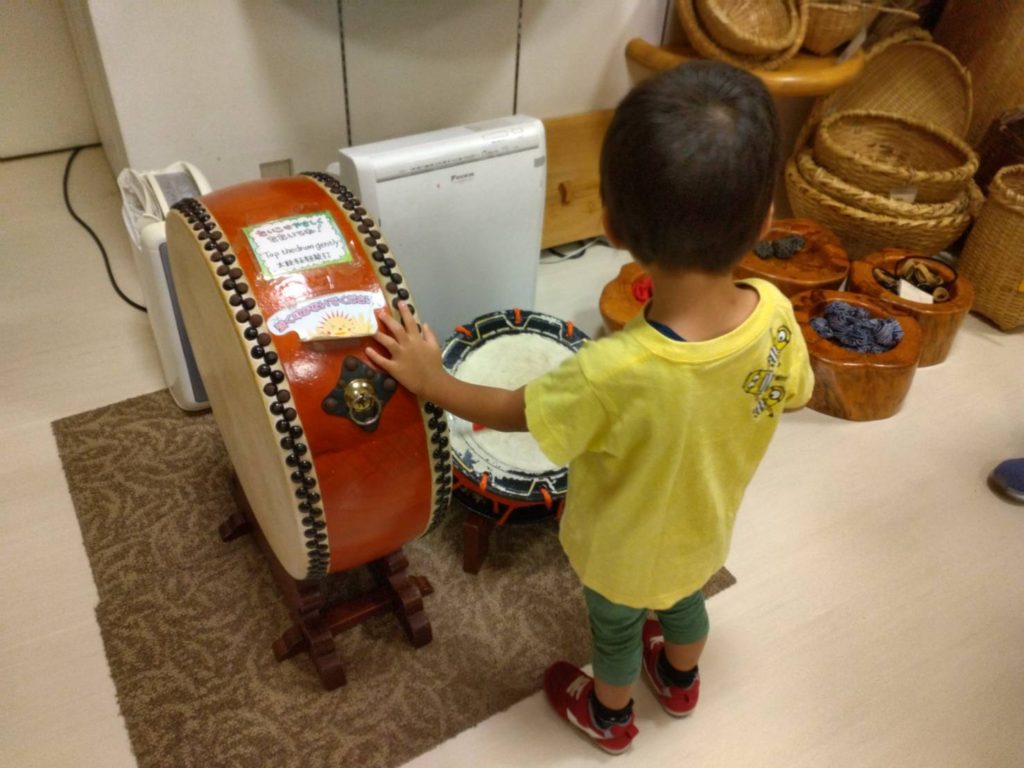 大きな太鼓をたたいてみたり!ドンドンドン♬