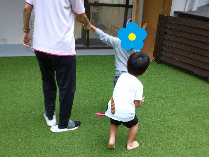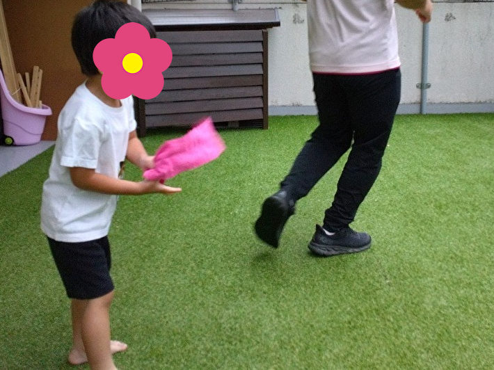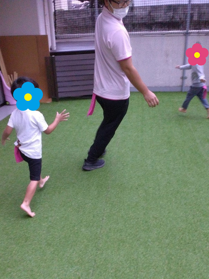 さて今日は、テラスで『しっぽ取りゲーム』をしました。
