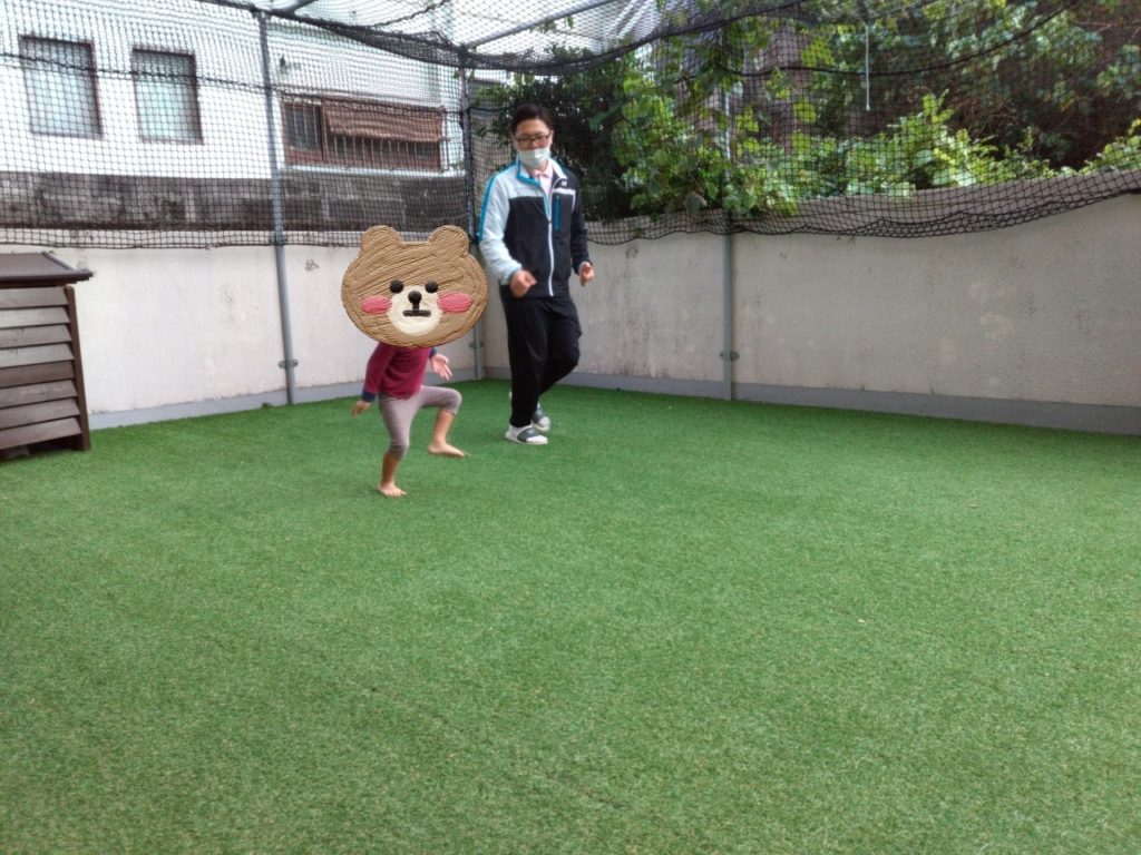 スタッフが少し後ろからついていくような形式で「だるまさんがころんだ」を再チャレンジ🔥