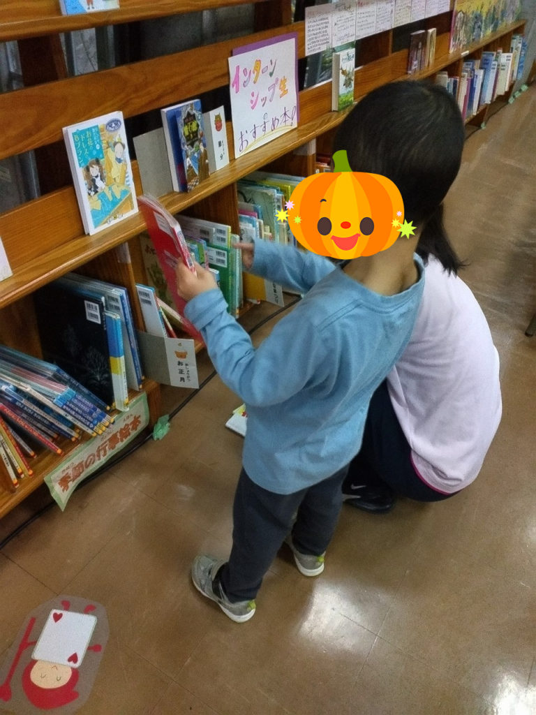 館内を回り、スタッフと一緒に読みたい絵本を探しますよ~👀