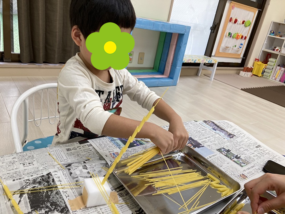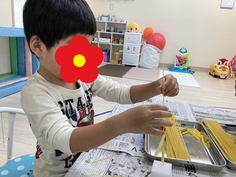 今日の課題はパスタ遊びでした!