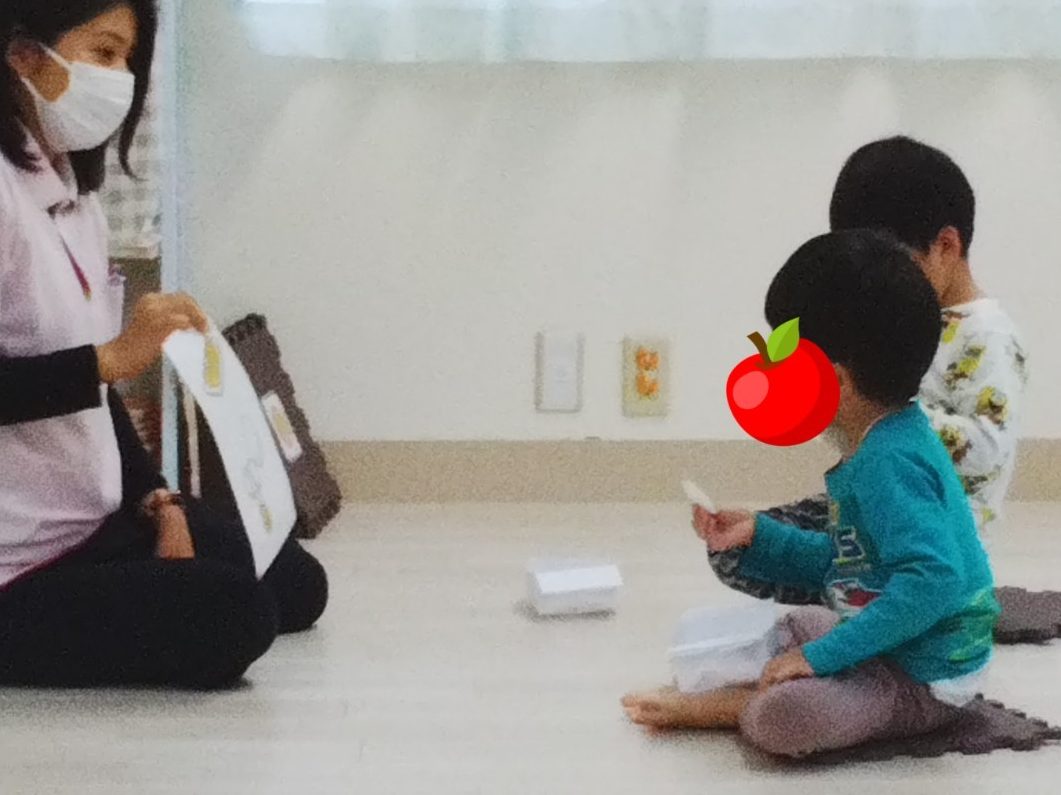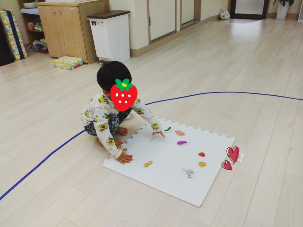 内容は料理のレシピ(必要な材料)のイラストを見せて、別の場所に置いてある材料を探すという流れです🍎