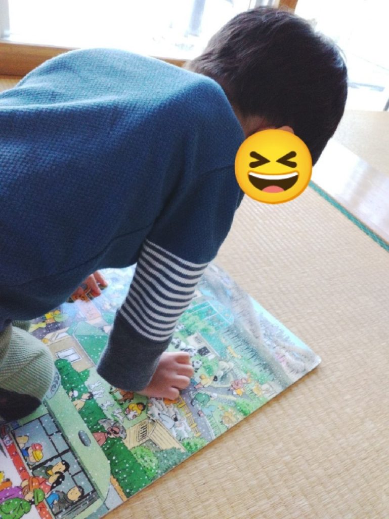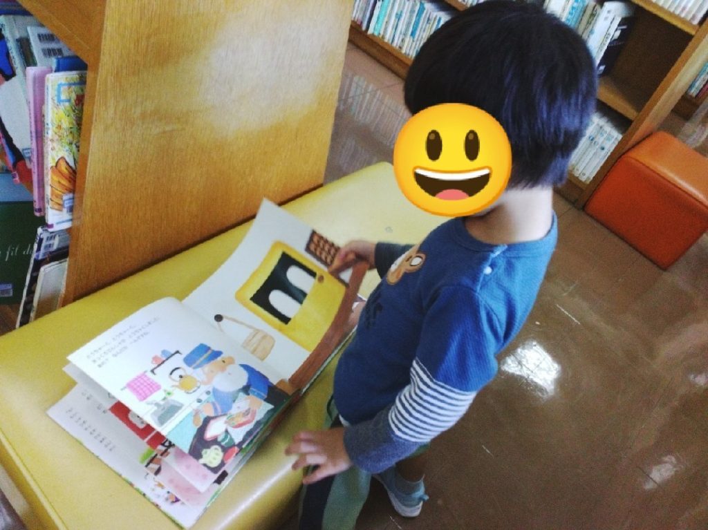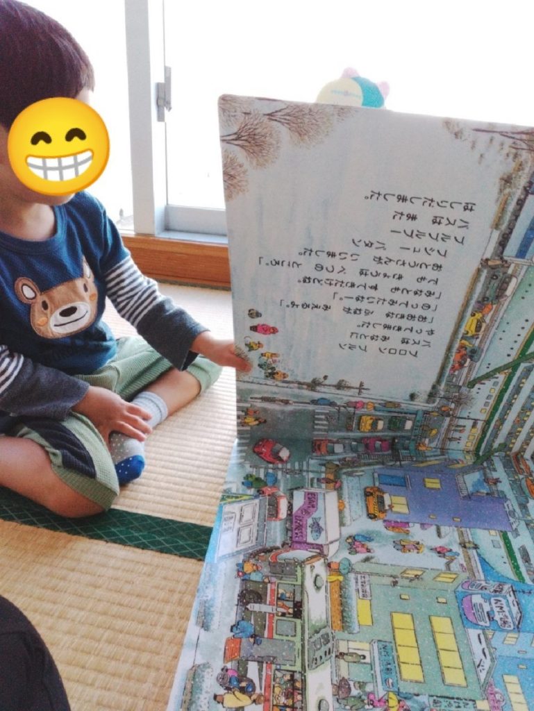 いつもよりも大きい絵本だったため「すごいおおきい!」と喜んでいる様子です😆