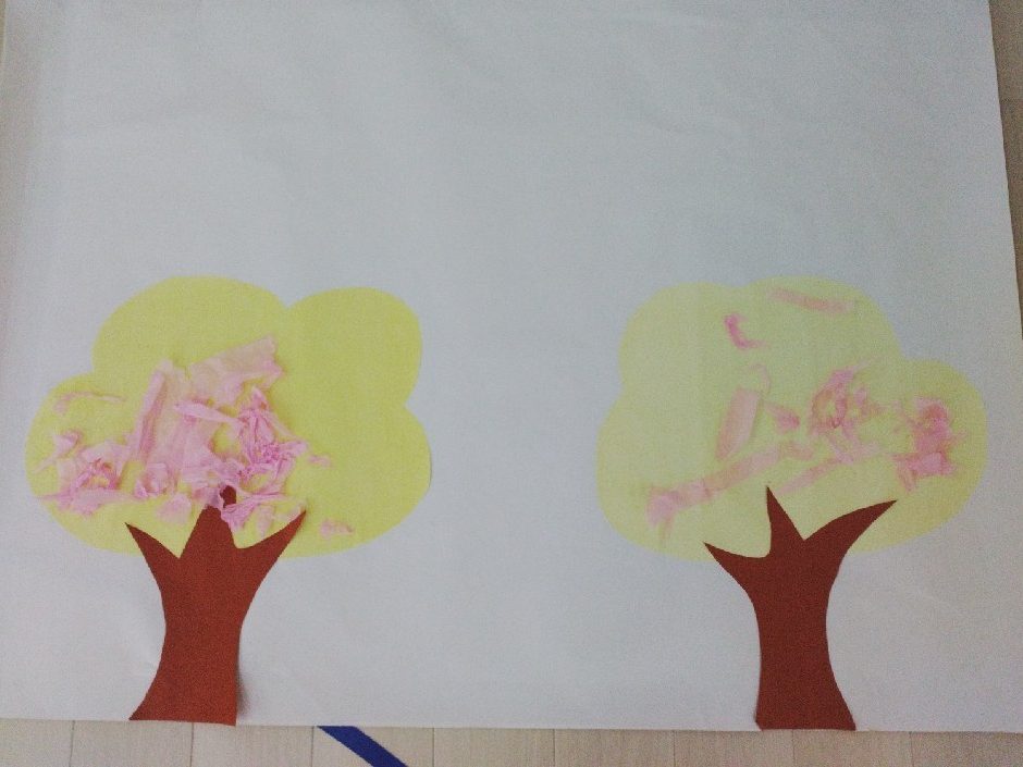 『おはな紙』は柔らくて、フエキのりが付くと指にもしっかりとくっついてくるので、お友だちはいつも以上に手拭きを使用して貼っていました🙌