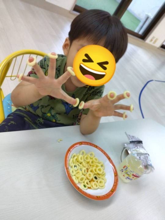 指にお菓子をはめて、「みてみて〜✨」と嬉しそうに見せてくれました😆🍒