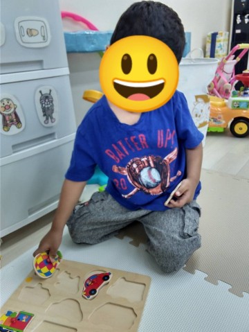 自分でパズルを手に取り型はめに夢中です!