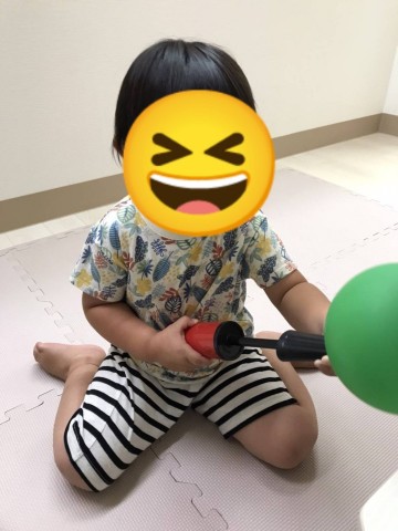 自由時間は風船を膨らまして飛んでいく反応を何度も繰り返し