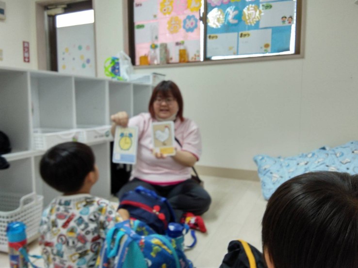 絵カードを取り入れ言葉の習得へ繋がるよう日々取り組みを
