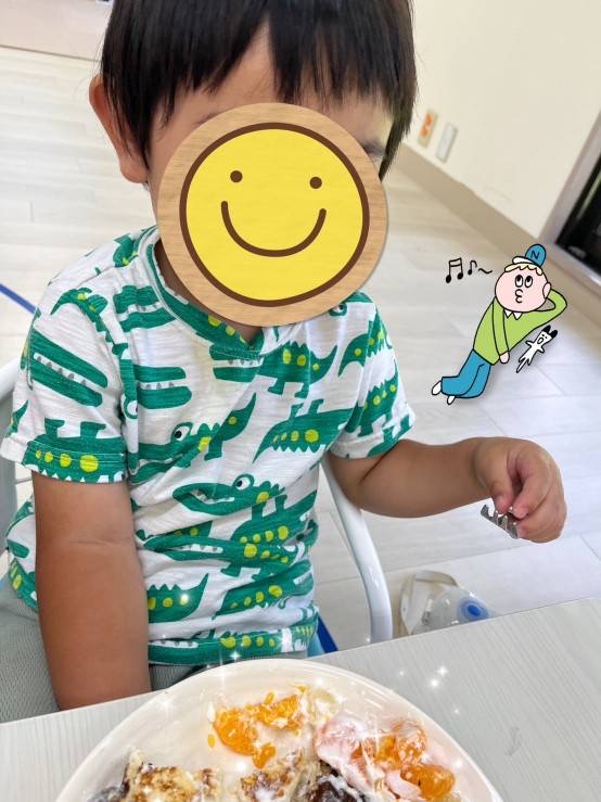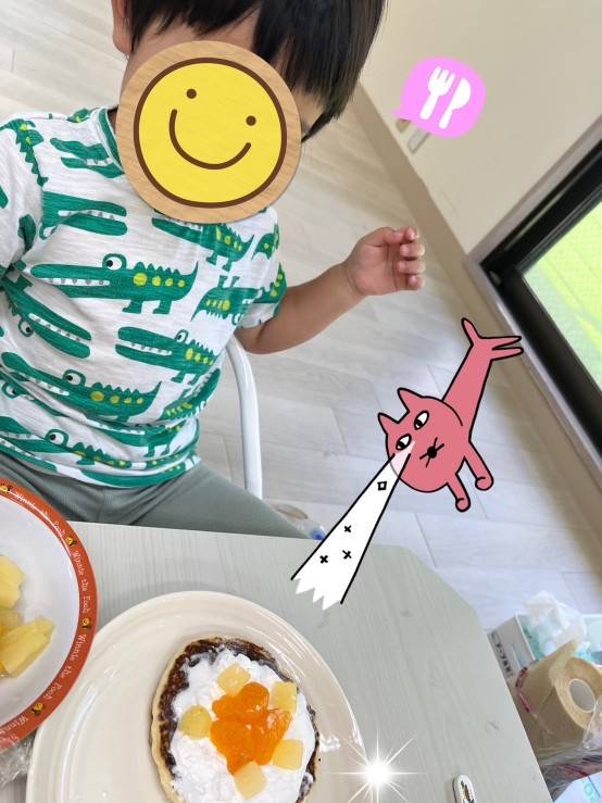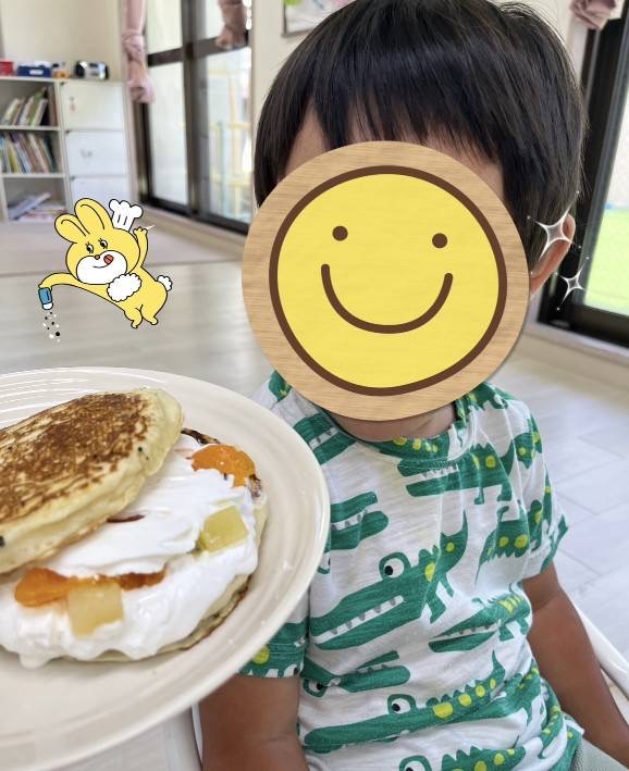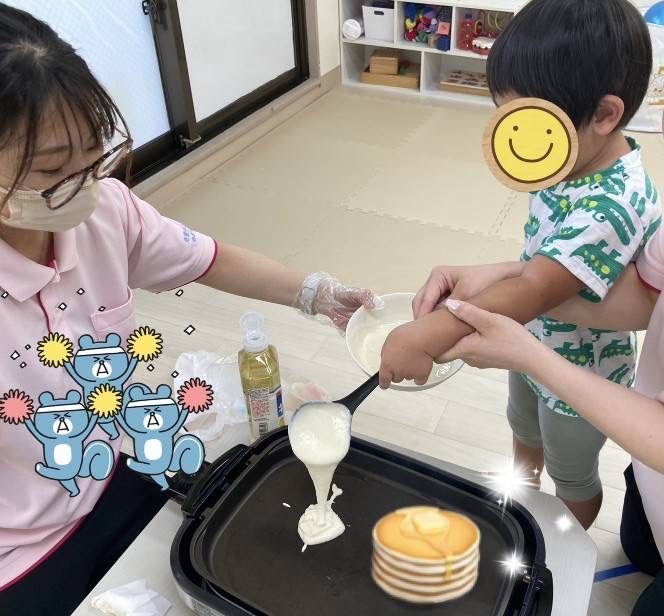 にこにこ楽しそうにホットケーキを焼いています😊✨