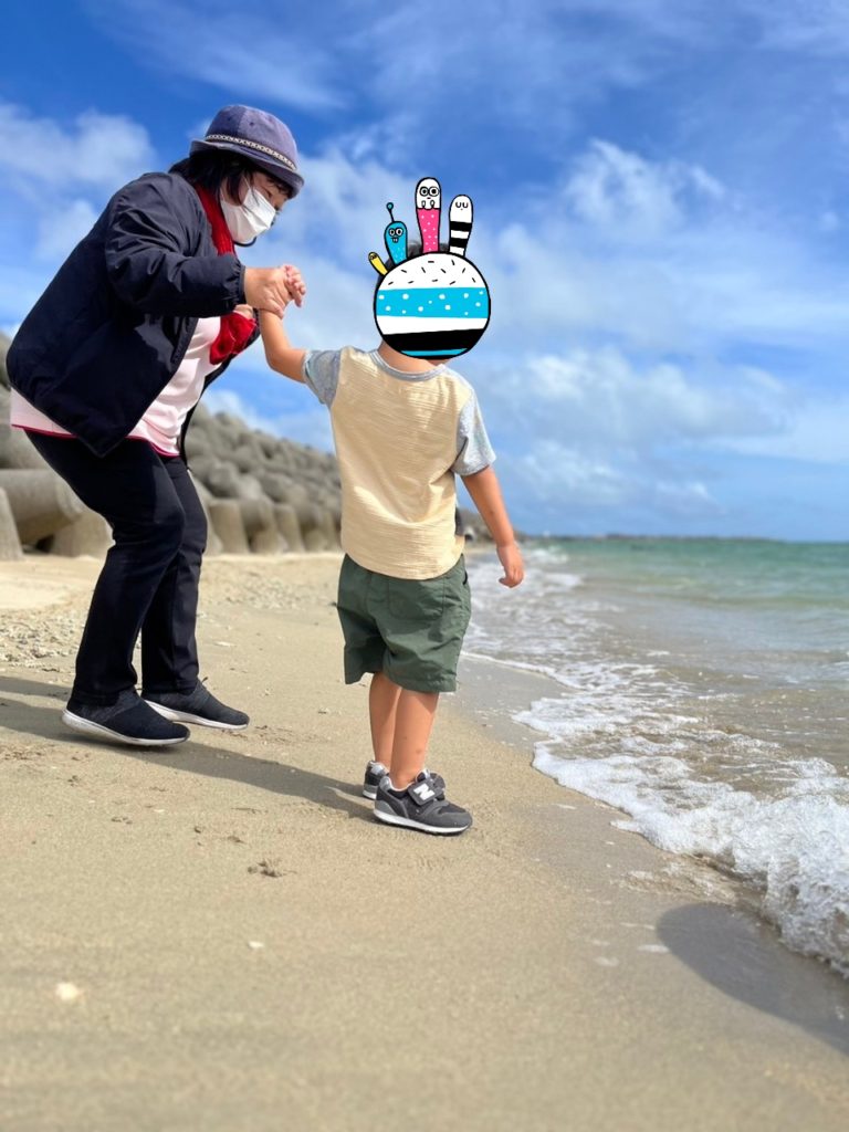 少し遊具で遊んだら、海岸沿いをお散歩しました!