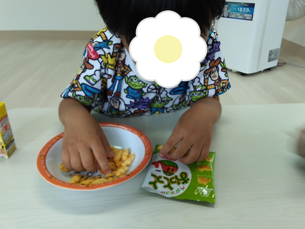 児童発達がメインのあろはでは保育園や幼稚園、こども園に在籍している子もいるのでおやつを園で食べてきたりあろはで食べたりと児童に合わせて様々です(^^)/