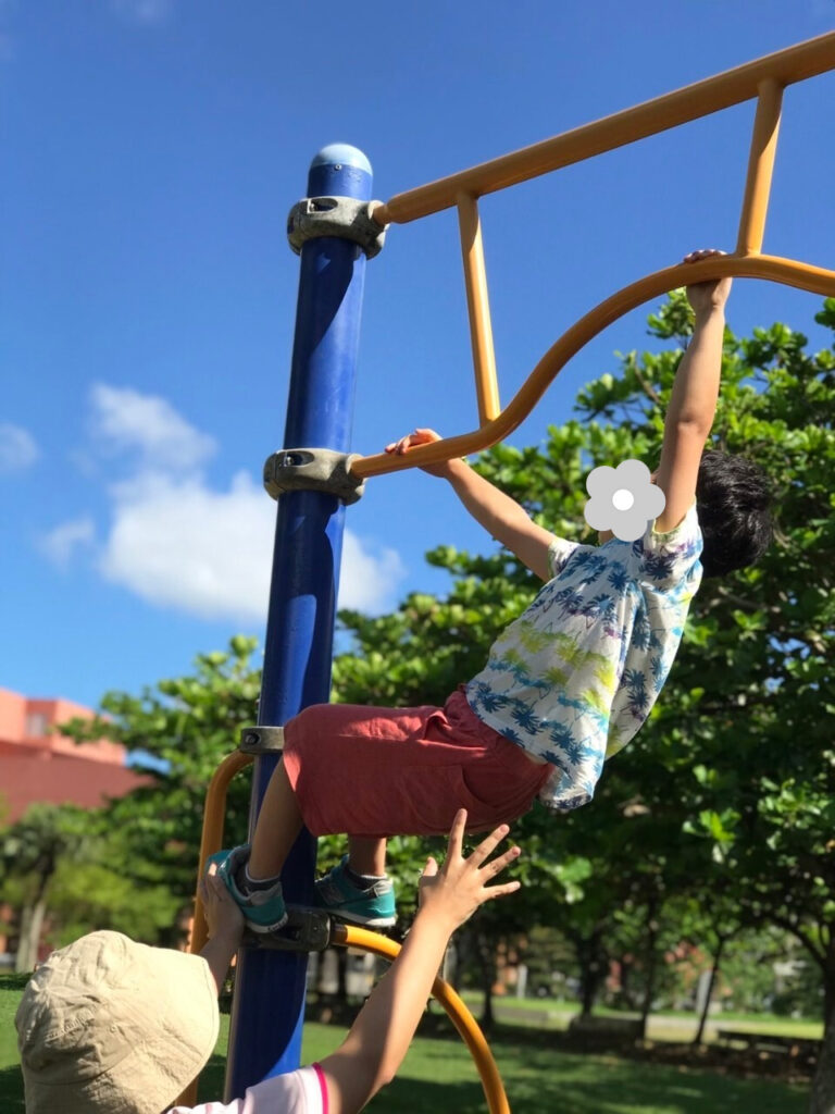 室内だと高い所は登れないけど、公園だと思いっきり体を動かして遊べるから楽しいね!!