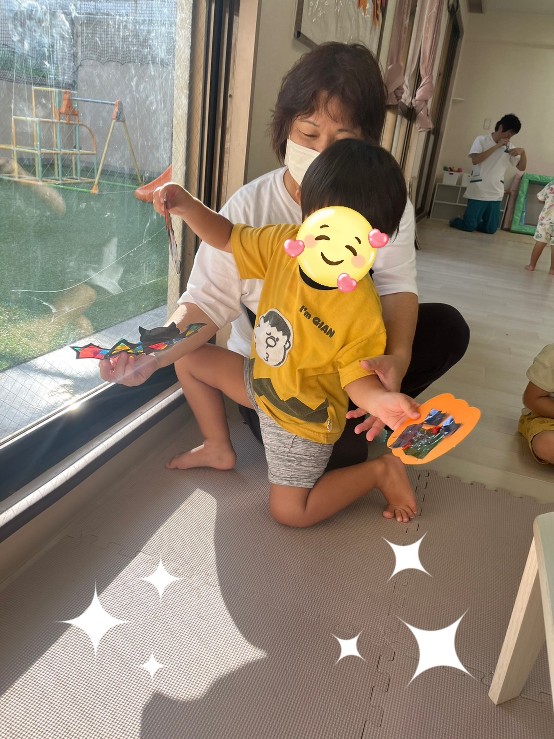 「見て〜キレイ」と動きをつけたり、お面にしたりと楽しみましたよ😁