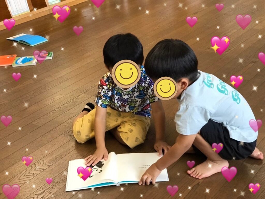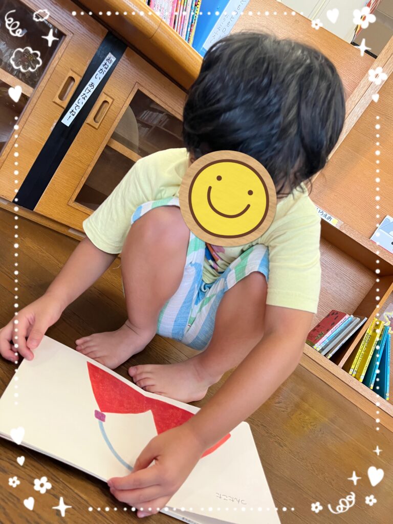 絵本が大好きな児童は最近興味を持っている”ひらがな”の絵本を見つけて繰り返し見ています👀✨