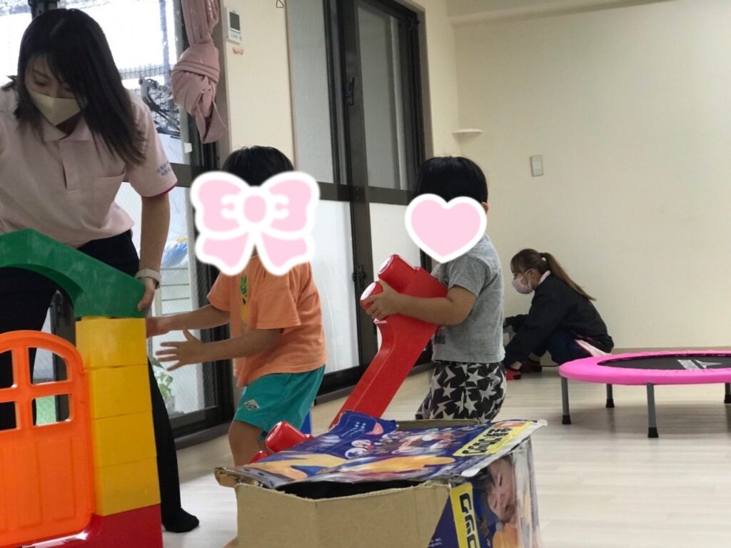 課題の後は自由時間です🤩みんなで大きいブロックで遊びました!