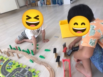 自由時間は最近大好きな連結列車の玩具で