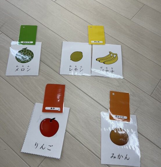 果物カードを見せて「この果物は何色になる?」と