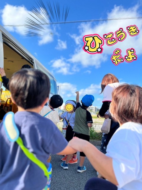 帰り道大空に飛行機✈️見つけたよ~皆で「バイバイ👋」しました。