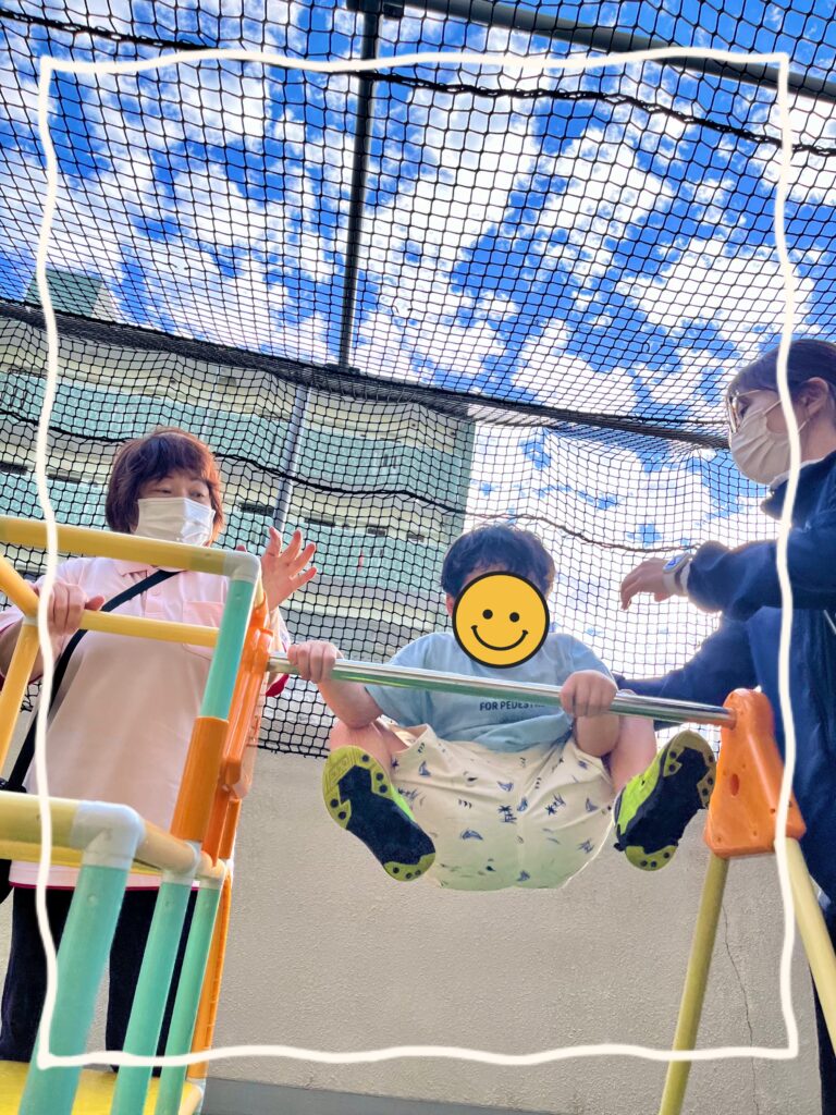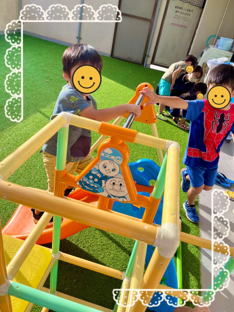 ☝🏻遊具で順番を守って滑り台や鉄棒をしたり