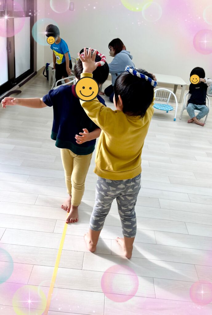 初めはルールがあいまいで輪を手で抑えたり落ちた輪を自分で拾っていたりしていましたが2.3回ペアを変えて繰り返すうちに少しずつ上手になっていました👍🏻😁