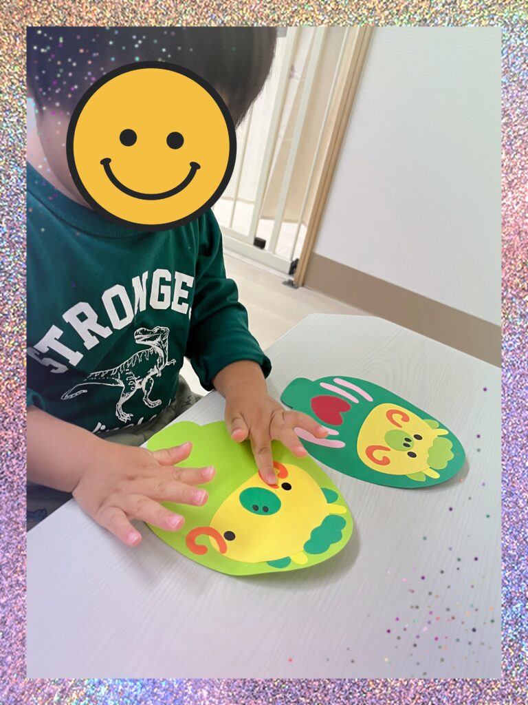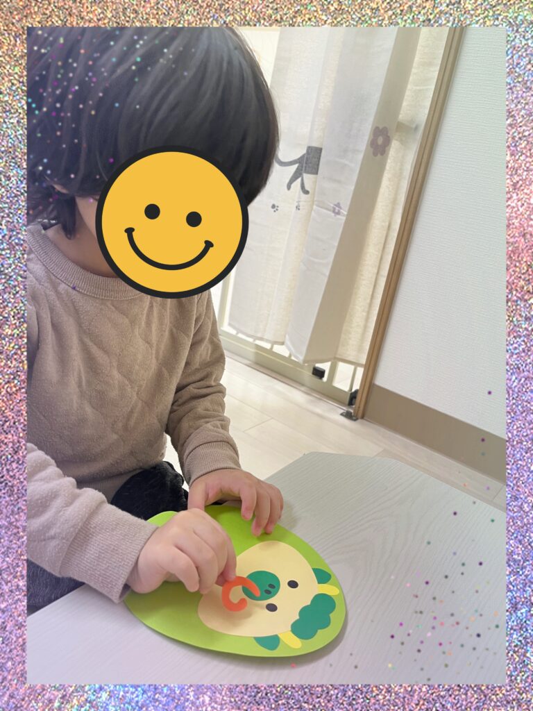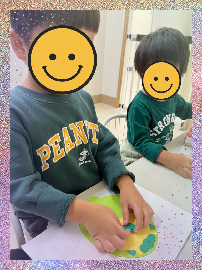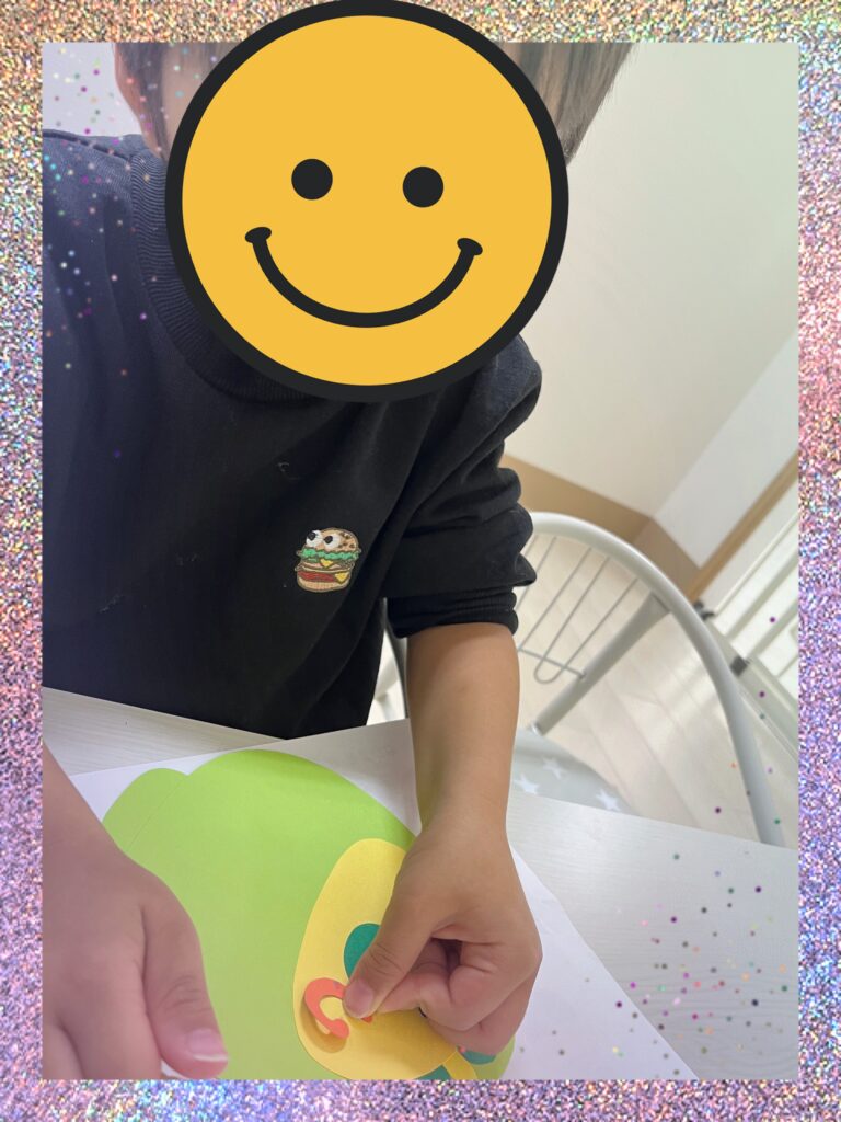 のりを塗るのが難しい児童は、スタッフが手を上から支えて練習していきます✨️