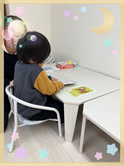 🍩おやつの後は自由時間。スタッフと初のババ抜きに挑戦😱ババを引かせない様にクセを見破るスタッフ💧勝たせる事に成功💪「ヤッター!ババ抜き楽しい〜もう1回やりた〜い」とトランプゲームにはまってくれたかなぁ〜😘