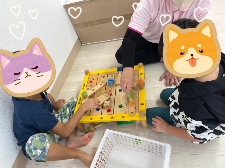 大工さんセットを仲良く貸し借りして遊べたね~☝️GOOD✨