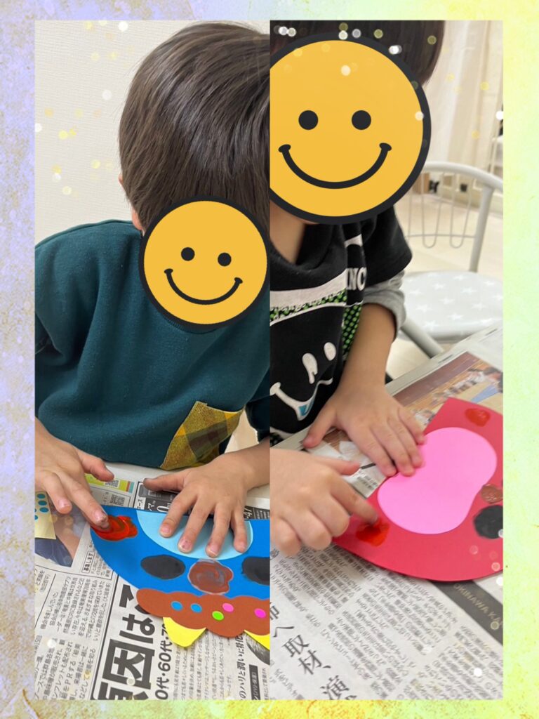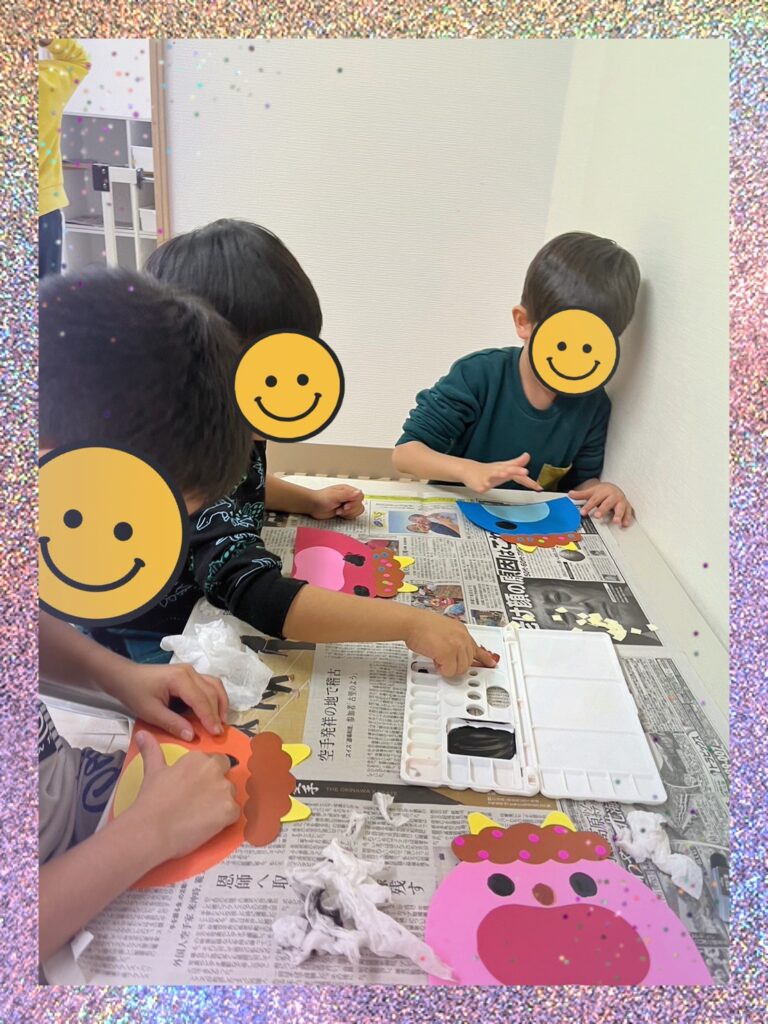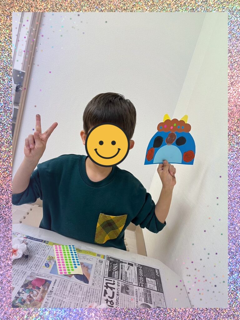 6色の中から好きな色を選び、鬼の髪の毛にシールを貼ってもらいます🤏🏻