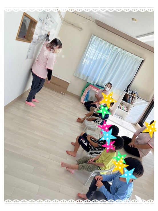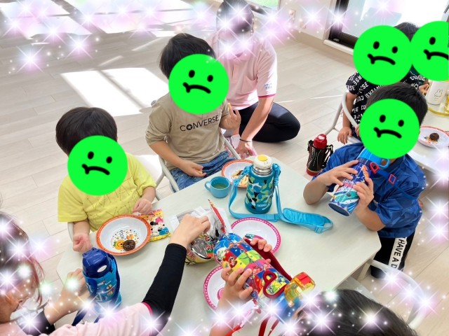 始まりの会でタイムスケジュールを確認して、まずは🍩おやつタイムですよ~