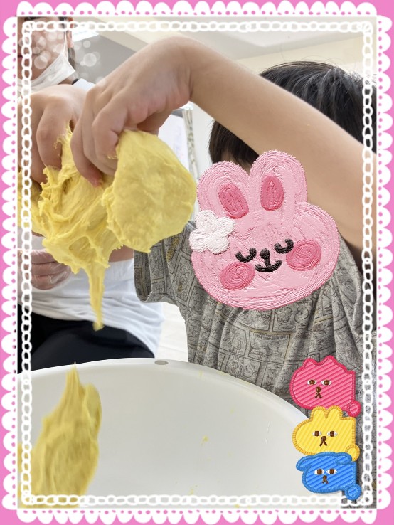 本日の課題はみ〜んな大好き「感触遊び」です。