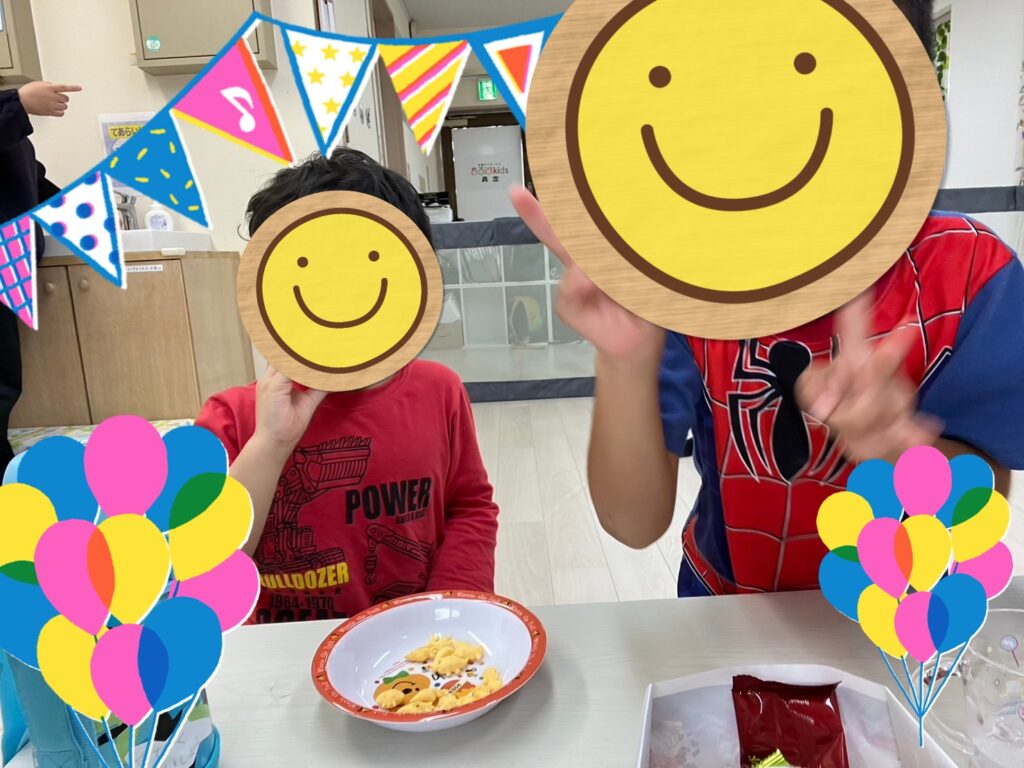 お友達と楽しそうにおやつを食べています😊