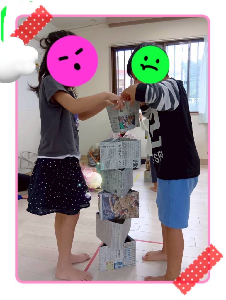 倒れてもお友達を責めずに「もう一回やろう」と声をかける様子も見られましたよ🙆