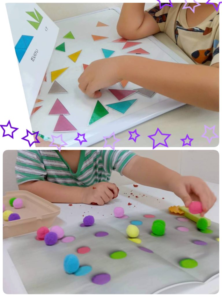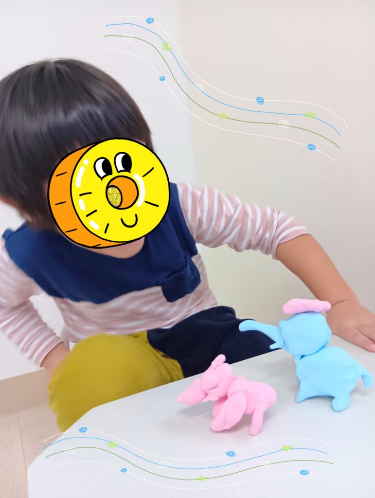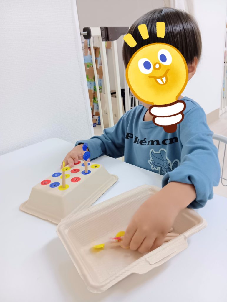 個別学習では支援員との物の貸し借りのやり取りのアプローチを行っています😊支援員が「かして」と言うと渡してくれ、児童が「かして」と言い、支援員が「どうぞ」と伝えると「ありがとう」と伝えることが難しかったため「ありがとうっていうんだよ」と伝えると「ありがとう」と伝えてくれましたよ〜✨️