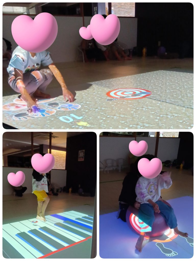 ◎映像と音楽に合わせて手足を動かし判断力・反応力・身体のコントロール力が育つ。