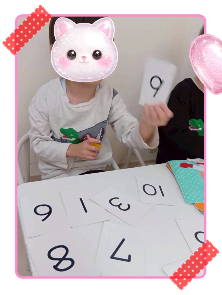 個別学習ではお友だちと一緒に文字のフラッシュカードにてかるたで遊びましたよ〜✨️支援員が文字を発した後にスムーズにカードを取っていましたよ👏時折「め」を「ぬ」のカードを取ったり「れ」を「ね」と少し戸惑ってカードをタッチする様子が見られため、支援員が「このカードは、ね、だよ。くるりんぱしてるのはね、シュッてしっぽになっているのは、れ、だよ」と文字の確認をして文字へのアプローチを行っています😊