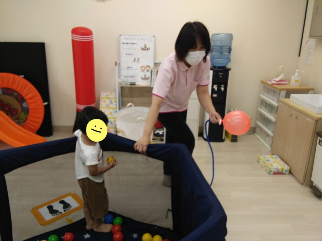 風船をつるしてタッチする遊びです🙌🎈