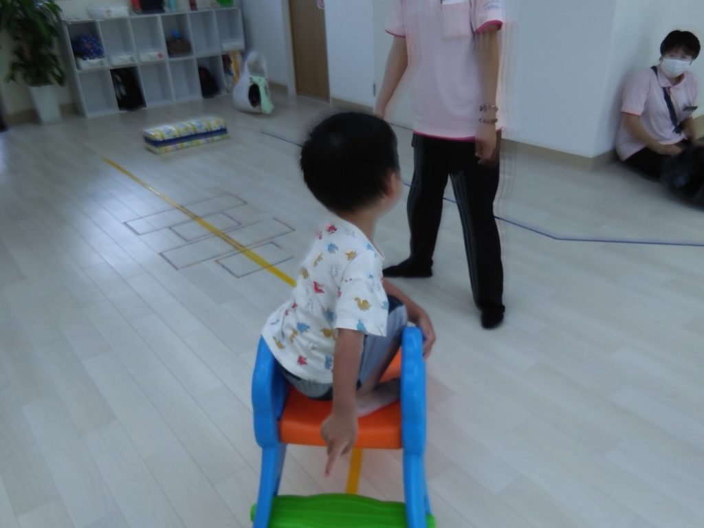 先にスタッフがデモンストレーションをして、それに続いて児童がスタートします🏃♀️✨すべり台からスタートです🏃♀️